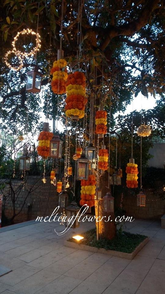 Wedding decorations can be made super unique, quirky and stylish with the help of fresh and lively blooms. For an open venue, make sure to decorate the trees as well with fairy lights, ornate lanterns and floral pomanders. You can give a twist to the regular spherical pomanders by stacking floral wreaths on top of each other. They make the place instantly appear more vibrant.