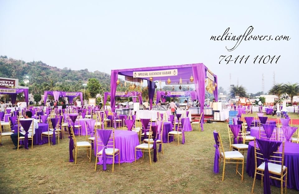 Easy and affordable, blue drapes can be used for any kind of decoration, from mandap to the open area. The benefit of using drapes is their variability of texture which can be effectively utilized in lending various kinds of effects to the decor.