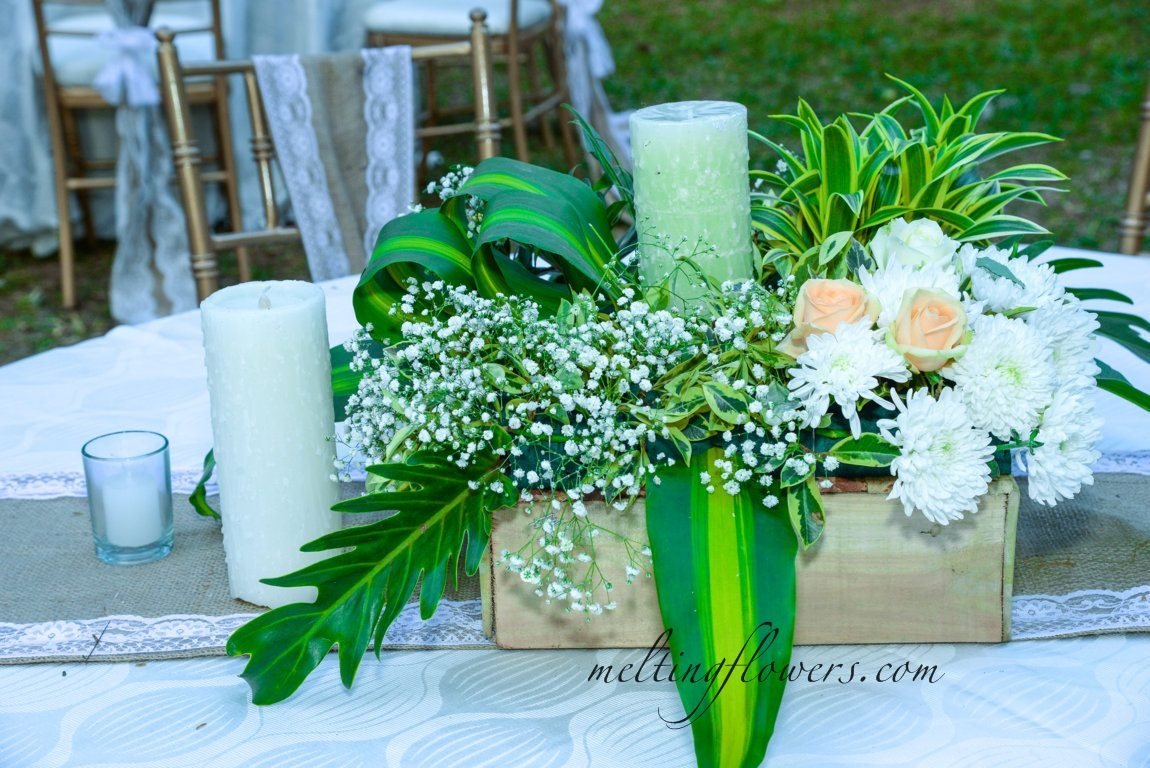 Spruce up your botanical table centerpieces not just with interesting choices of flowers but also leaves and ferns in a variety of attractive textures and hues.