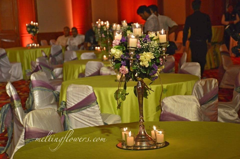 This gorgeous table adornment with crystals and hanging candles in tiny glass containers is a sight to behold. Such elegant marriage decoration will amaze your guests and contribute to the aesthetics of your banquet hall. This is the perfect example of how candles and diyas can be creatively employed in contemporary settings as well, without looking out of place.