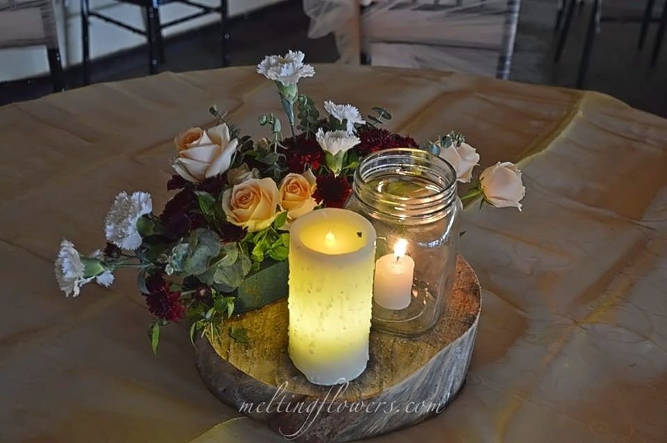 Infuse life into the seating arrangement for your guests with these delightful table centerpiece adornments. A rustic setup with florals and candle bars placed on a wooden log have an undeniable charm that is perfect for a daytime event or brunch settings. For a more flamboyant and decorative look, opt for a shiny metallic candelabra laden with flowers.
