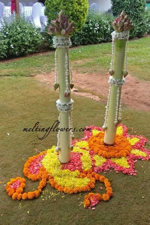 Get creative with your choice of flowers and allow the best flower decorators to weave them into unique adornments to spruce up every corner of your wedding venue. Look at this lovely combination of luscious lotus and jasmine blossoms that can be placed along pews and pathways. More showy flowers and ferns can be placed with other ornamentations at hall entrances to welcome the guests.