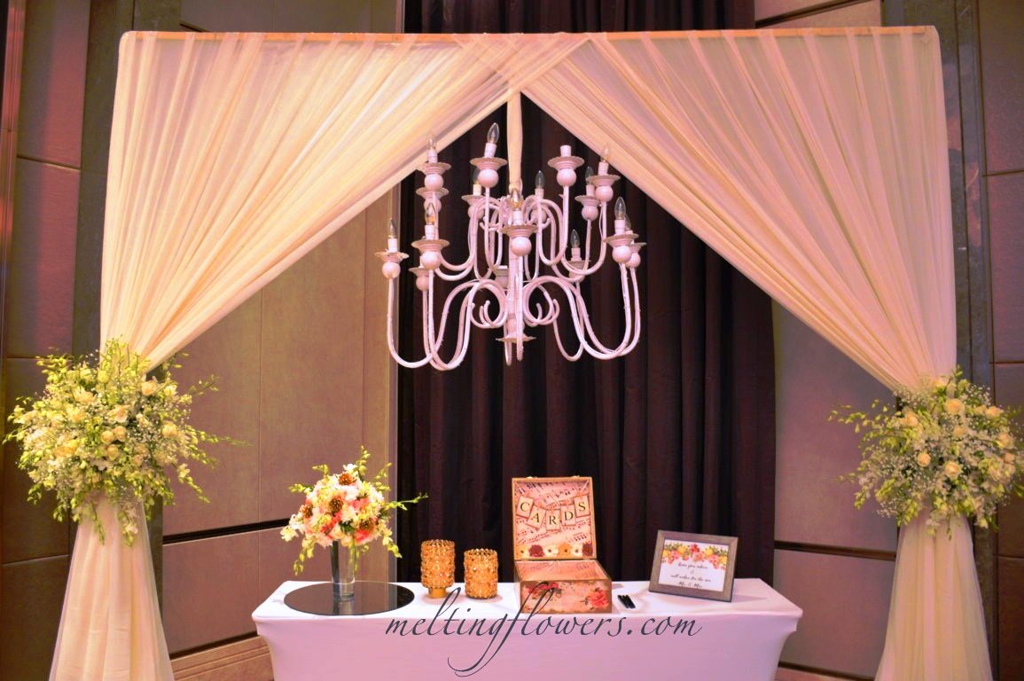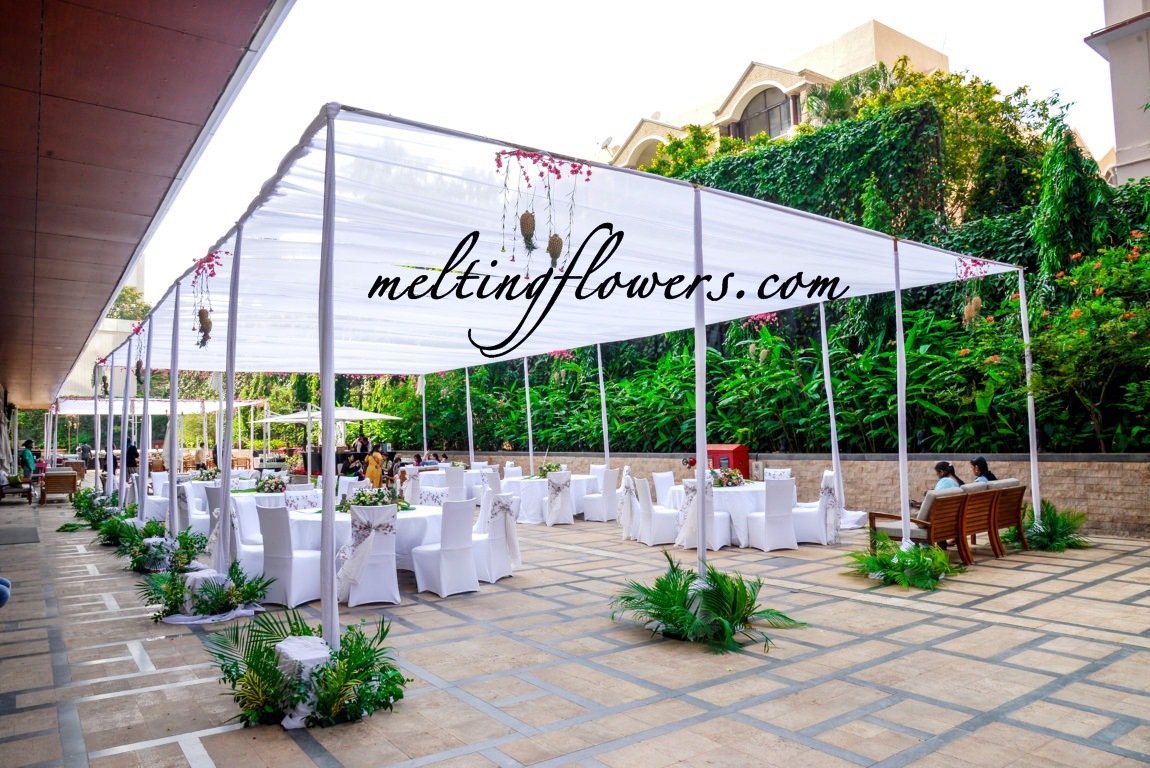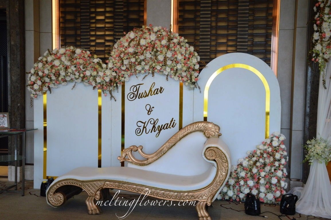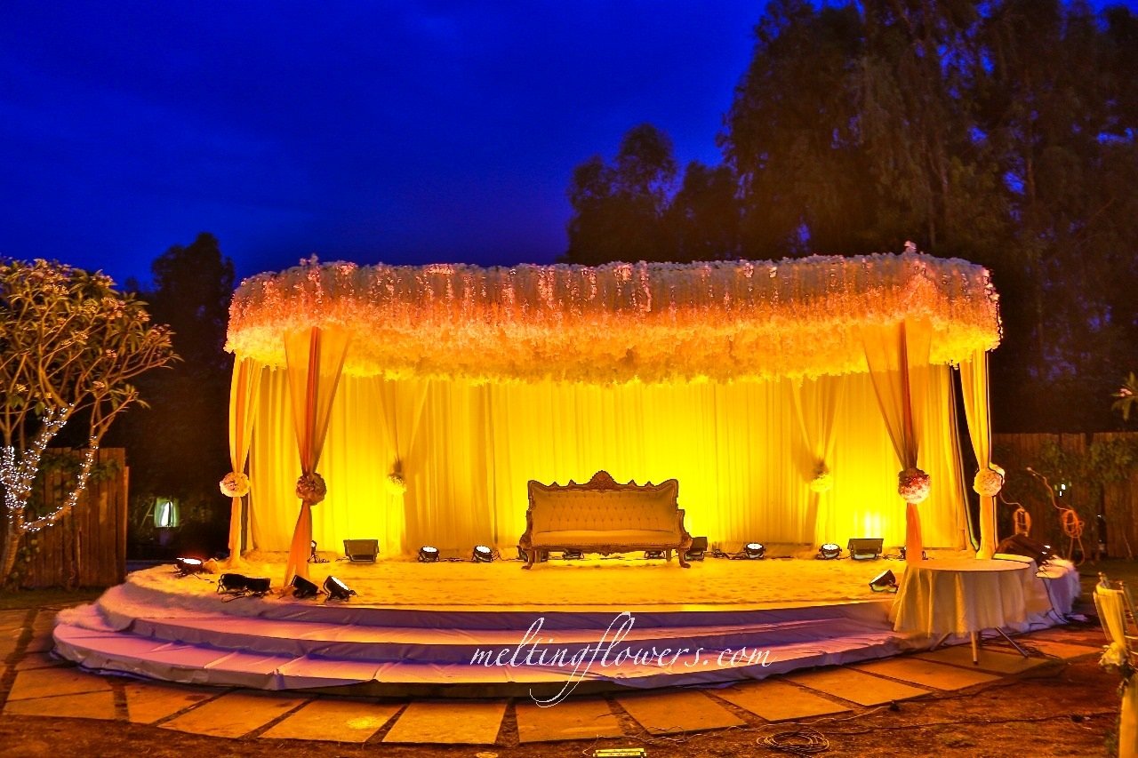 Evoking the imagery of the mellow splash of colors at dusk with a surreal glow, this theme is an absolute wonder with flower arches shrouding the pathways, gorgeous chandeliers and a luminous stage that is lit up so beautifully you simply can’t take your eyes off of it. It is a skillful assemblage of fresh and artificial flowers bathed in a soft glow.