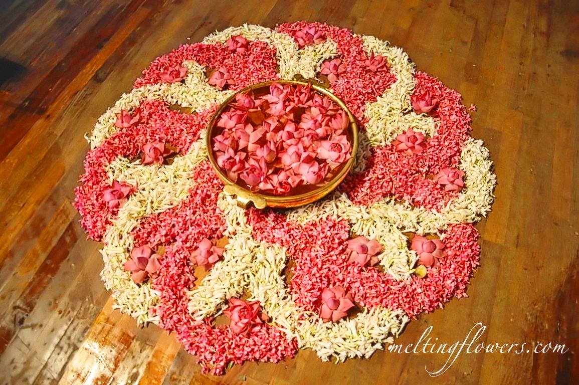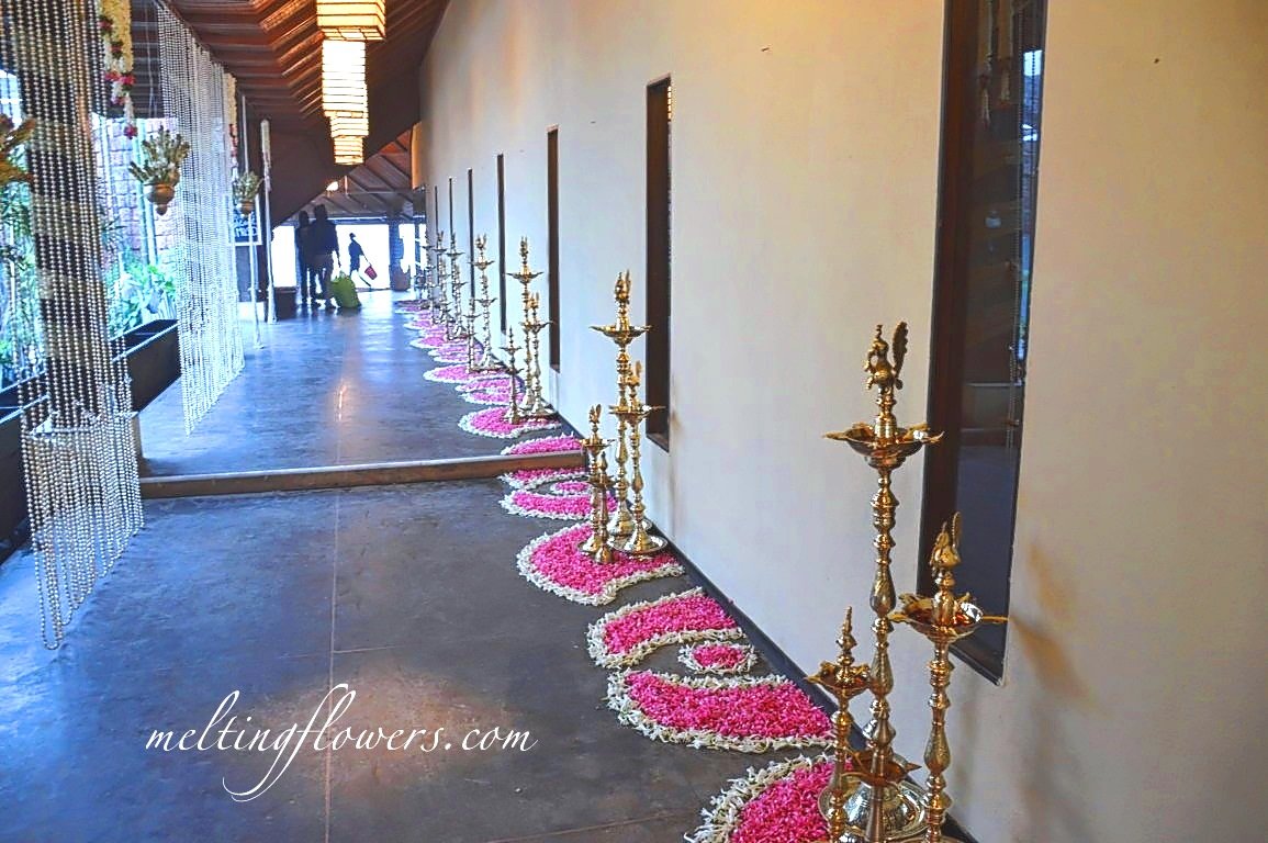 Petite floral petals can also be lavishly spent on making floral patterns to line up walkways and pathways and fill up any empty space or unadorned corner.
