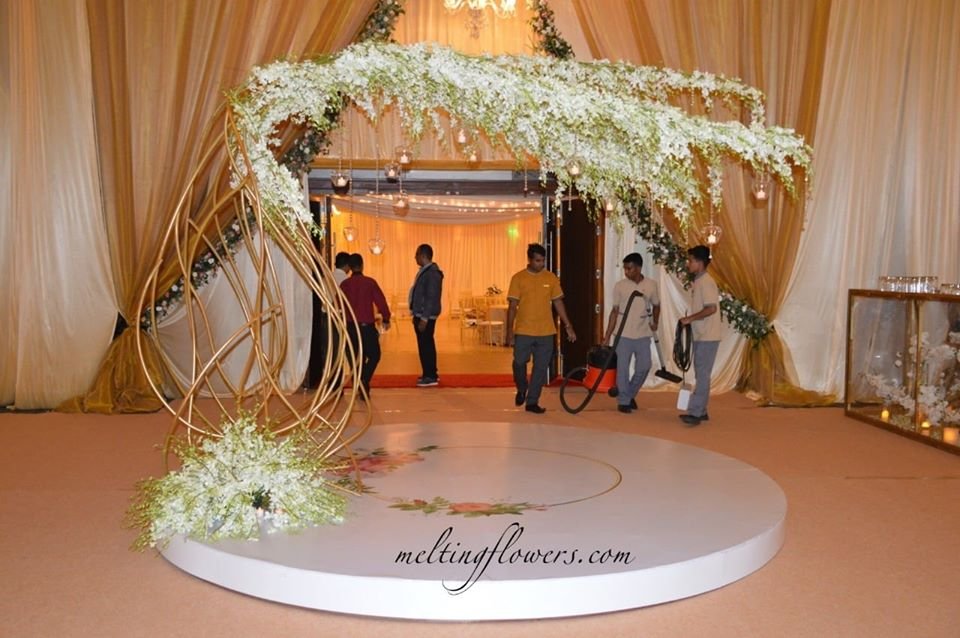 Eclectic showpiece or floral arrangements are a great way to instantly liven up any kind of venue. They can be placed at the entrance or in the corners or a grander version can even be used as the focal point of the marriage decoration– have a look at this ornate floral sculpture that one surely can’t take their eyes off of. The colors match the drapes and wall liners and come together in a stunning luminescent appearance. Ornate lanterns are another option to create a grand, captivating setup, fitting for the upscale venue.