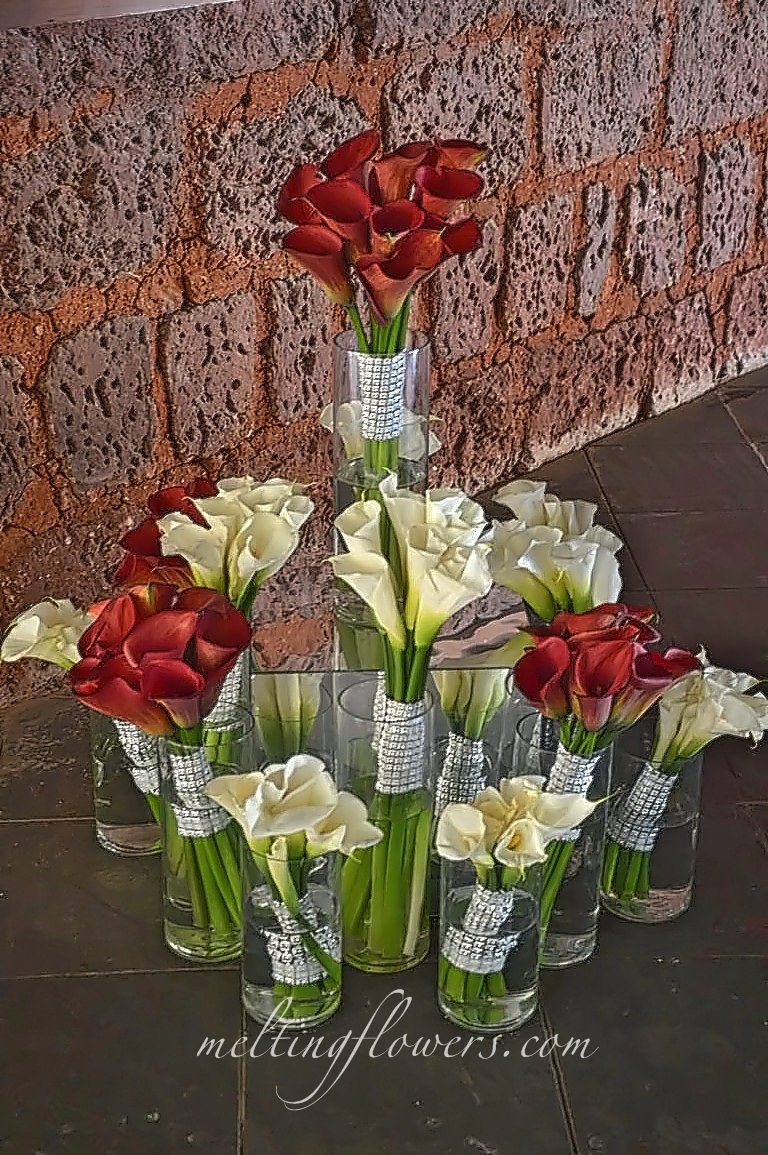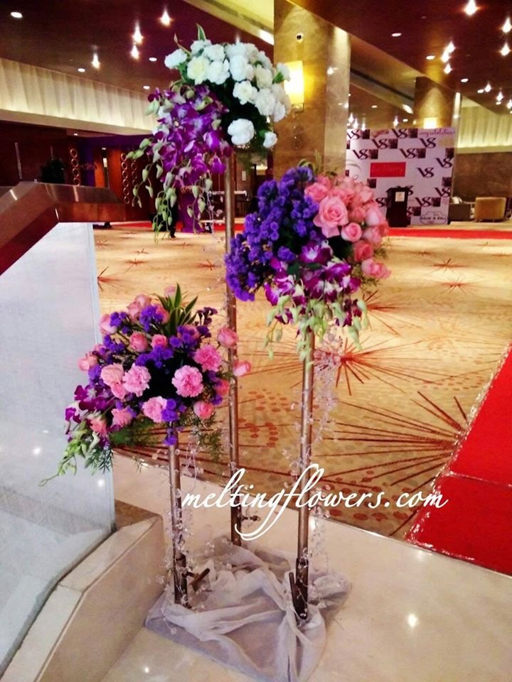 There are also a few other ingredients that work with florals to transform the venue. The lighting is key- it can be in the form of elegant and contemporary lanterns with soft, mellow lighting or a cool shade such as blue or purple for a mysterious effect. The furniture linen must also be chosen accordingly. Lush golden fabrics add radiance to the opulent look of the place while darker, neutral colors complement the unique florals perched atop the table.