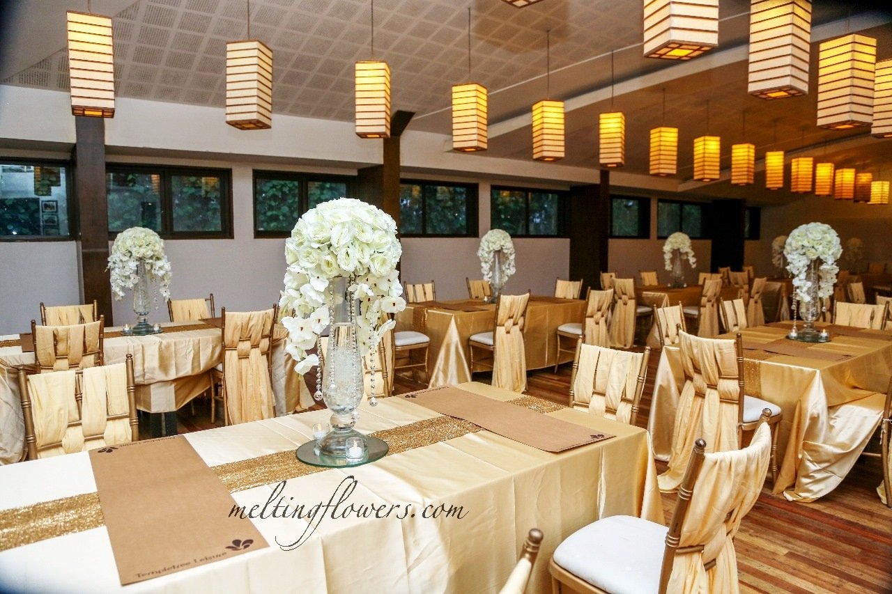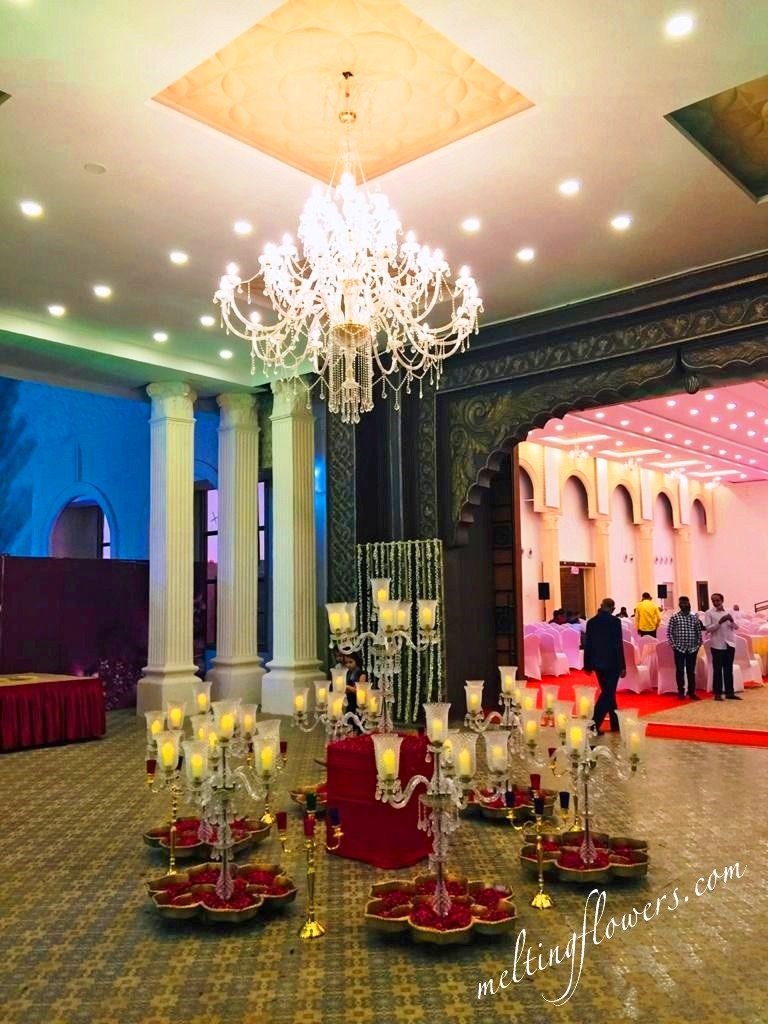 Some tasteful centerpiece decoration is also a must when it comes to giving the simplest of banquet halls a fancy touch. Based on the overall seating layout and the furniture used, you can either go for an elegant arrangement with candle jars and scattered flower petals or, if space allows, elaborate flower decoration to adorn every tabletop. As you can tell from the pictures, they clearly play a role in setting the ambiance while your guests enjoy the party and the feast.